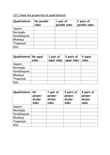 On the basis of it we can recognize what type of quadrilateral is this. All the properties of a parallelogram apply by definition. Quadrilateral kysh is a rhombus. The teacher may do a very short review of the previous learning in chinese before distributing the worksheet in english. Writing and evaluating expressions worksheet.